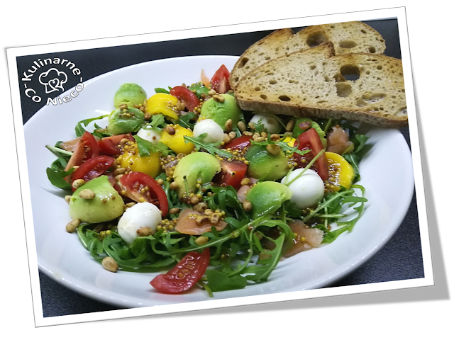 propozycja lekkiej i bardzo przyjemnej sałatki na kolację. Połączenie egzotycznych owoców z charyzmatycznym smakiem łososia oraz lekko kwaśnym sosem świetnie się