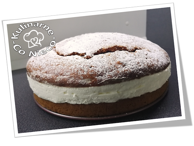 Przed podaniem posypać wierzch ciasta cukrem pudrem a potem przechowywać