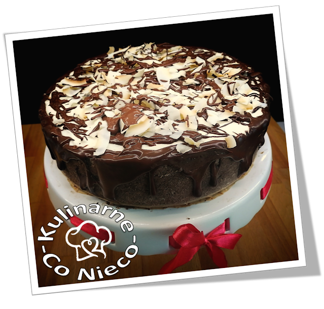 wierzch tortu a całość na koniec posypać uprażonymi wcześniej chipsami lub