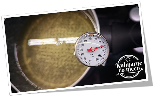 Olej podgrzać do temperatury około 80°C, a