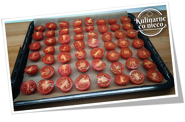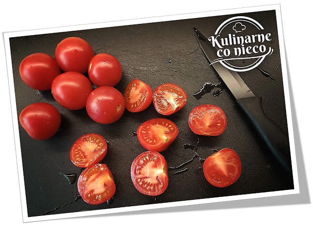 dokładnie umyć a następnie każdego z nich przekroić na pół. Połówki pomidorów