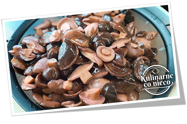 kontrastuje z kwaśną zalewą i naturalnym smakiem grzybów.