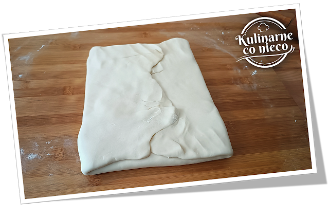 Rozwałkować ciasto na prostokąt i złożyć na trzy