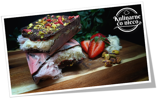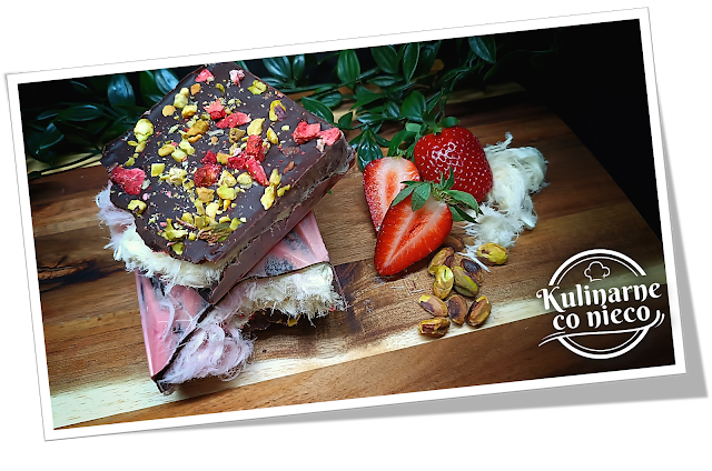 czekolada, subtelnie zabarwiona na różowo, sprawia, że całość wygląda jak