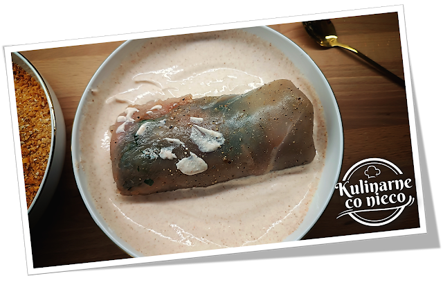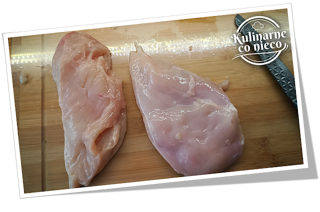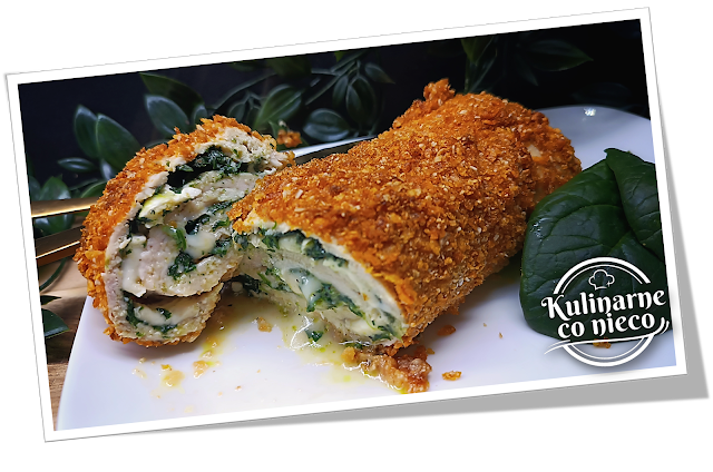 piersi kurczaka, rozbite cienko i ciasno zwinięte, skrywa w sobie aromatyczne,