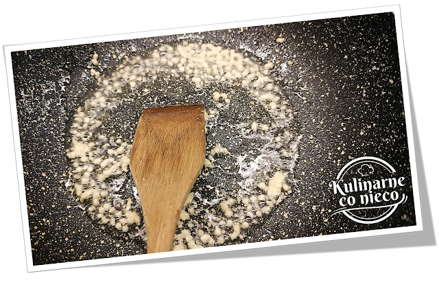 patelni rozgrzać łyżkę oleju. Wrzucić przeciśnięty czosnek i podsmażyć