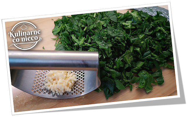 bardzo krótko, tylko do uwolnienia aromatu. Następnie dodać szpinak i smażyć ok