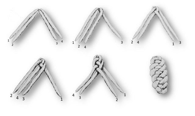 wałeczek długości ok 30-40 cm. Następnie z wałków zapleć warkocz (metoda
