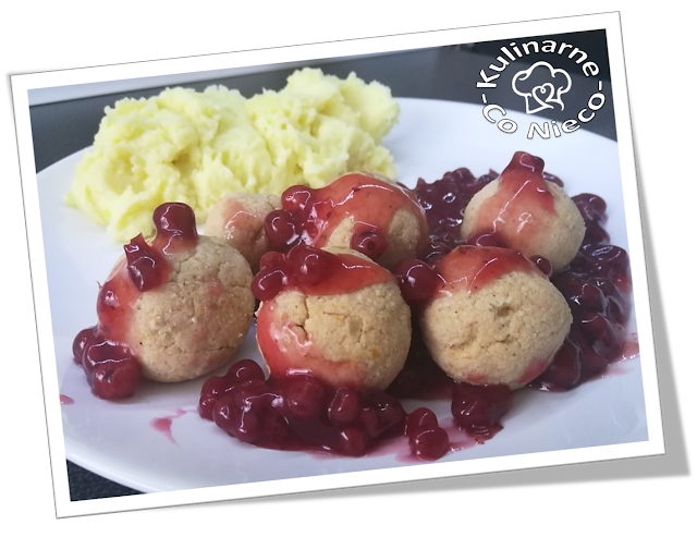 wody). Pulpety ułożyć na talerzu i polać sosem żurawinowym. Całość podawać z