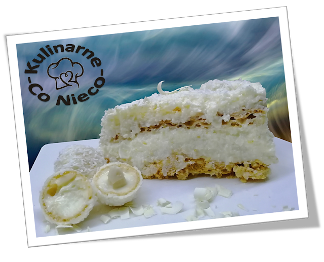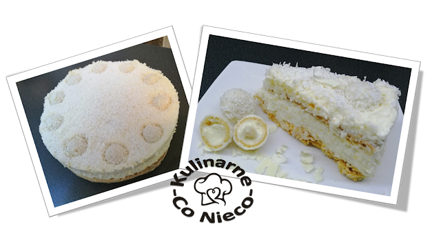 pralinami Raffaello wg własnej fantazji. Torcik wstawić do lodówki na kilka