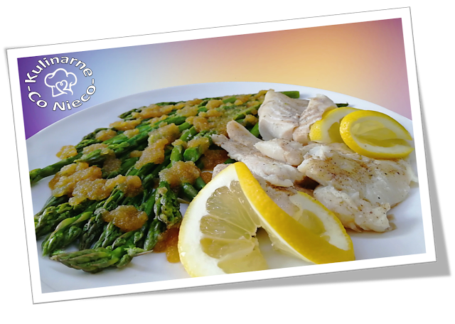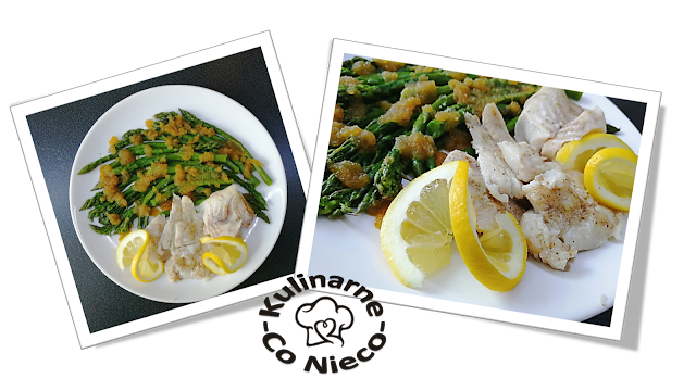 Ugotowane szparagi poukładać na talerzu i polać sosem z bułki tartej. Dorsza