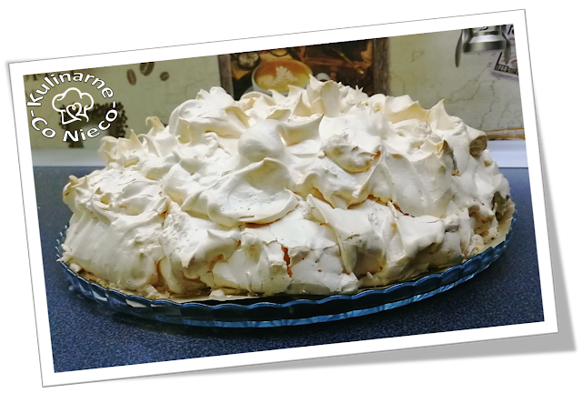herbatnikowej masy nie pękły. Dokładnie obłożyć całość bezą zarówno boki jak i