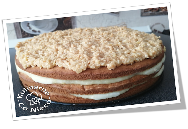 wyrównać i całość przykryć trzecim blatem. Odstawić na bok, aby ciasto sobie