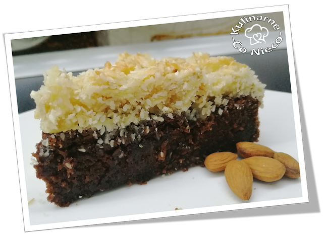 bardzo wilgotne w środku, pod pierzynką z karmelizowanych płatków migdałowych,
