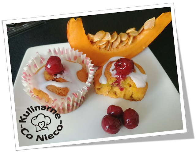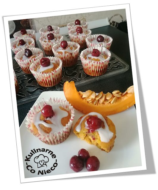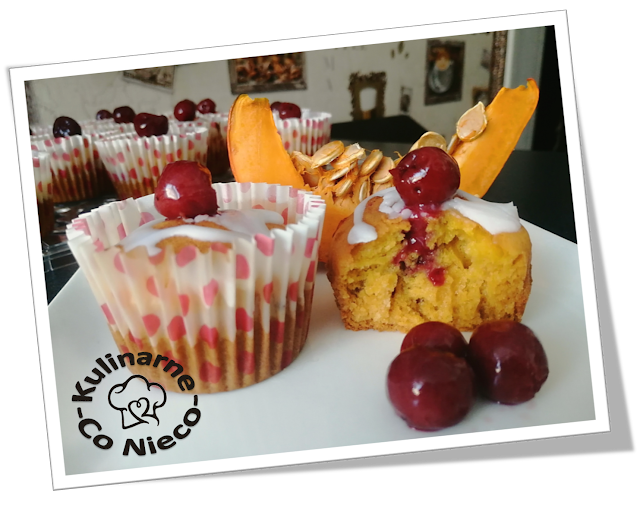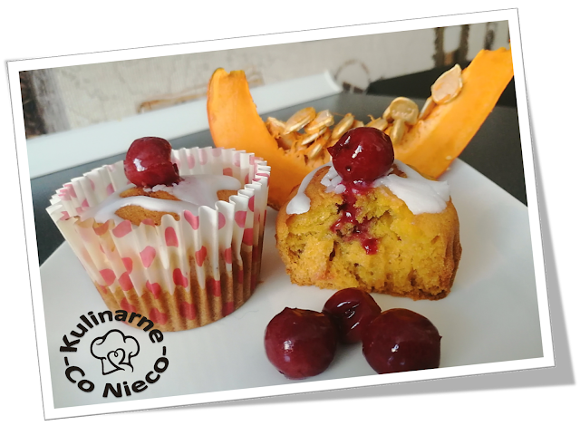 Muffiny Dyniowe z Konfiturą Wiśniową i Białym Lukrem
