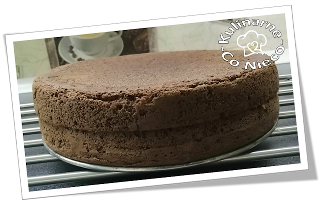 Upieczony biszkopt wystudzić na kratce a następnie wypiąć go