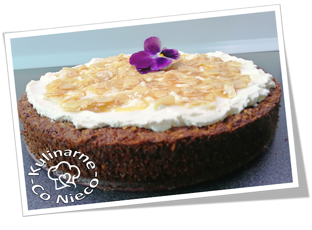 upieczonego ciasta i polać uprażonymi w miodzie płatkami migdałowymi.