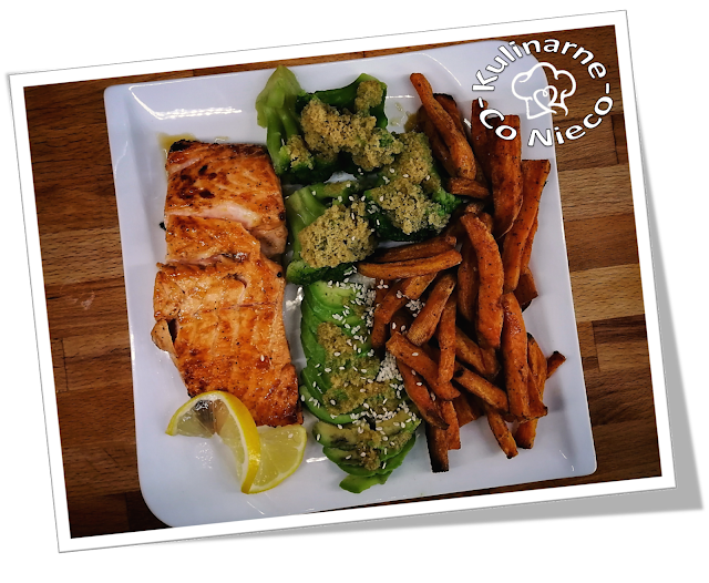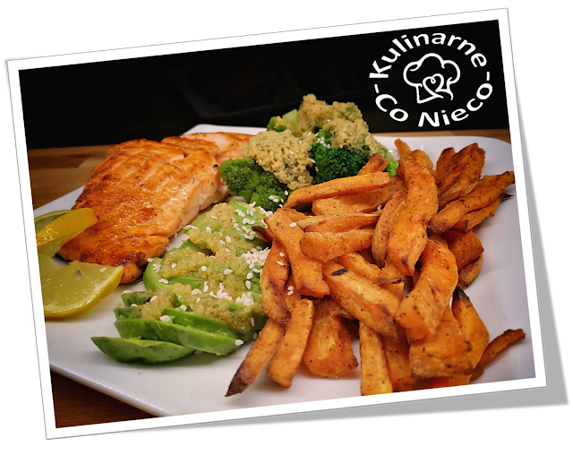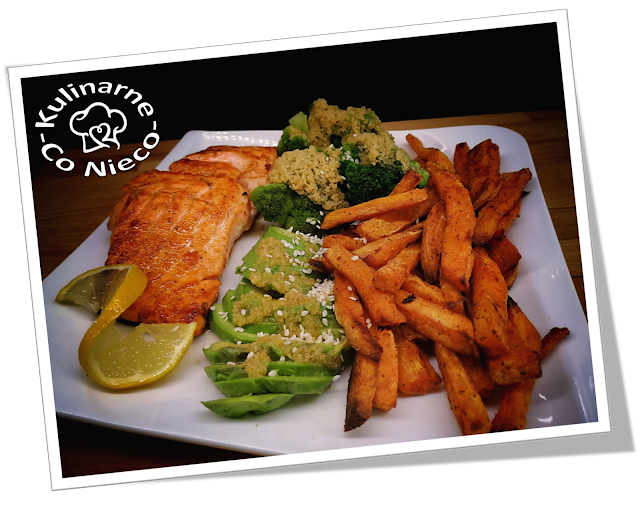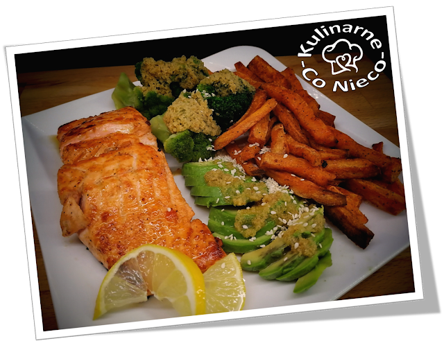 Łosoś z Awokado, Brokułami i Frytkami z Batatów