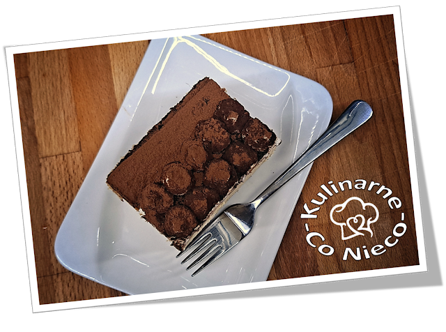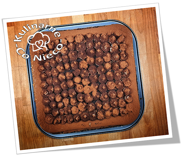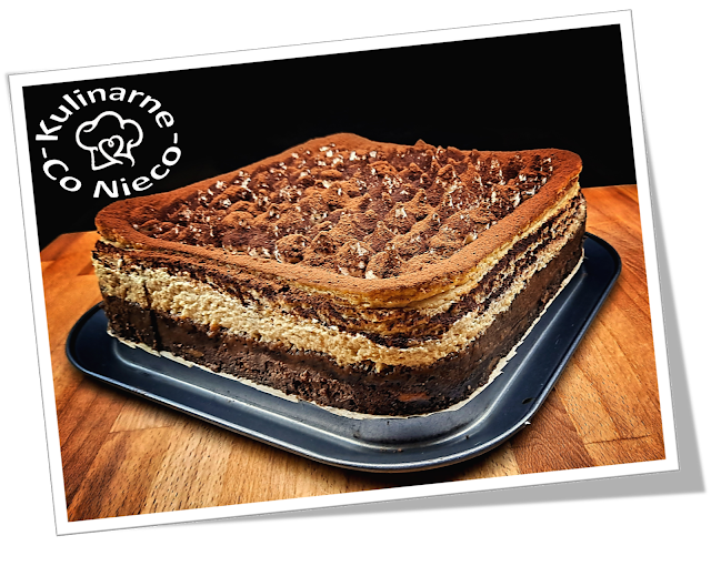 wszystko ukryte pod aksamitnym śmietanowym kremem i udekorowane gorzkim kakao.