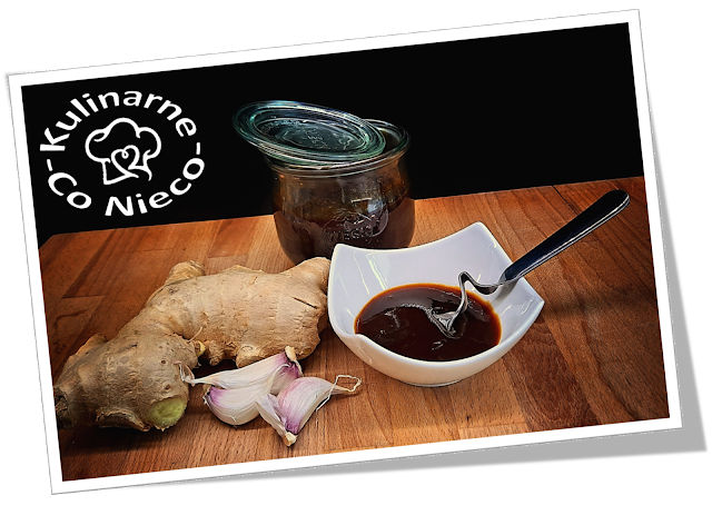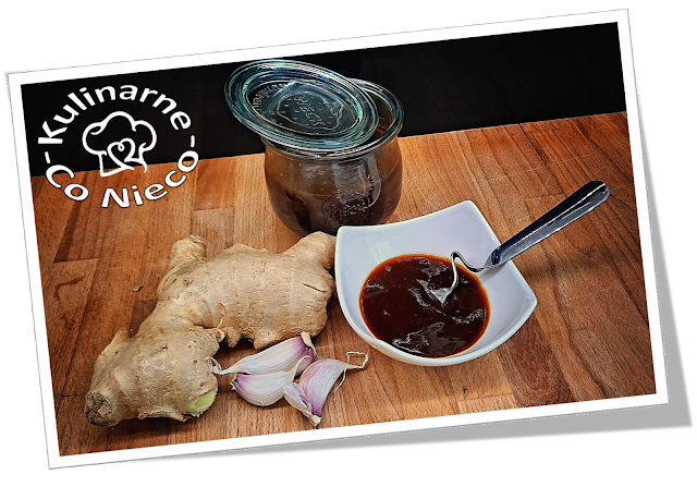 Wodę, sos sojowy, cukier i miód umieścić w rondelku i dokładnie wymieszać. Czosnek i imbir obrać ze skórki a następnie zetrzeć na tarce z drobnymi oczkami. Dodać do rondelka i zacząć podgrzewać na średnim ogniu aż całość się zagotuje. Tapiokę lub skrobię kukurydzianą wymieszać z dwiema łyżkami zimnej wody a następnie wlać do sosu ciągle mieszając. Zmniejszyć moc palnika do minimum i gotować całość jeszcze przez chwilkę aż sos zacznie lekko gęstnieć.