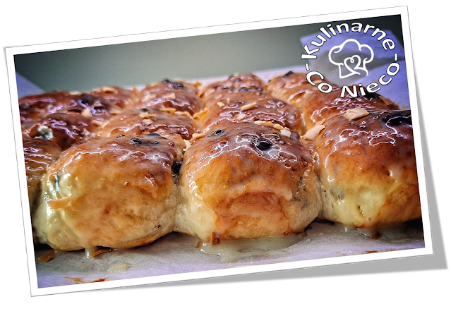 170°C. Formę z wyrośniętymi bułeczkami umieścić w nagrzanym piekarniku i piec