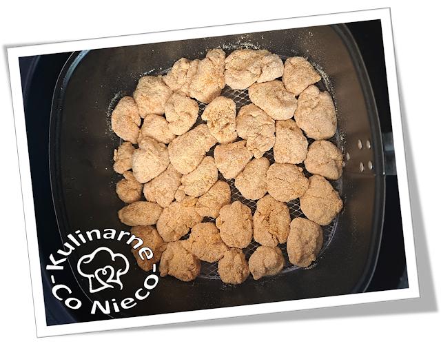 Nuggetsy przez 7 min a następnie ostrożnie wysunąć kosz, delikatnie obrócić