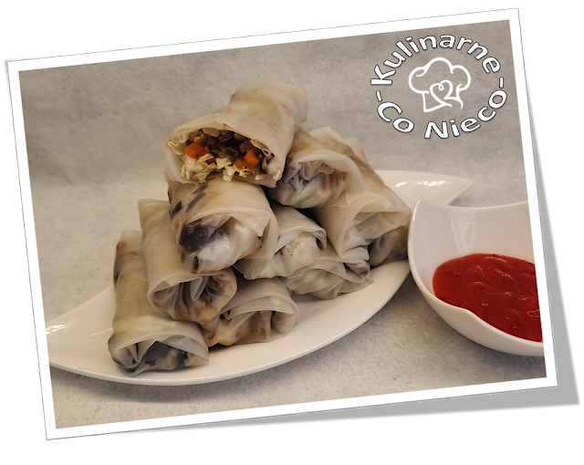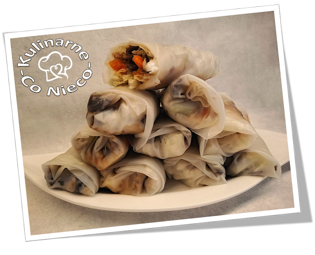 papieru ryżowego zanurzyć na ok 2 sekundy w letniej wodzie a następnie położyć