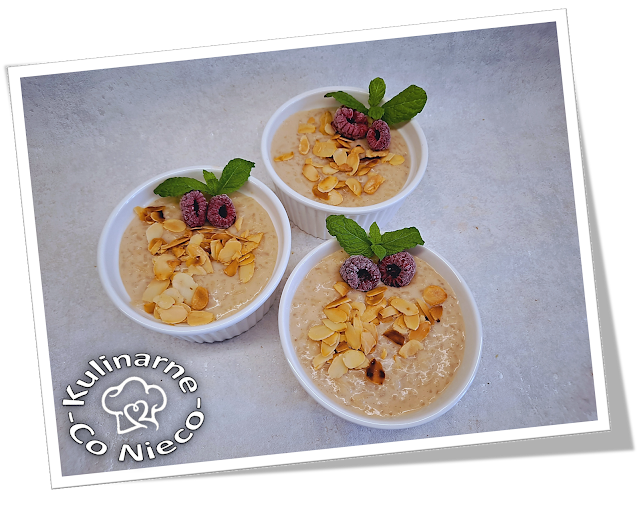 Pudding podawać dobrze schłodzony i udekorowany prażonymi