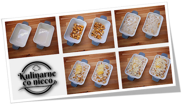 wyłożyć pozostałe kawałki jabłek. Wierzch udekorować plastrami jabłka i blanszowanymi