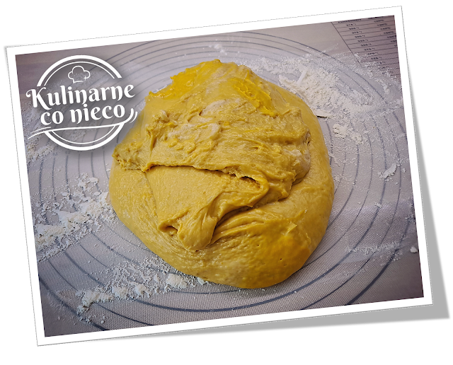 ciasto z wierzchu także oprószyć mąką i rozwałkować na duży prostokąt o