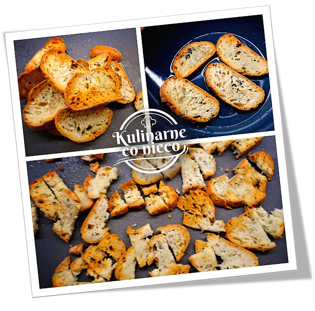 moczyć w powstałym sosie czerstwe kromki chleba z obu stron.