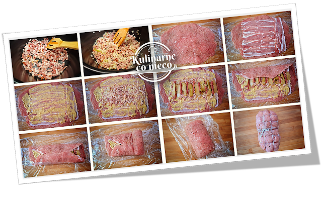 Na płacie mięsa ułożyć plastry wędzonego,