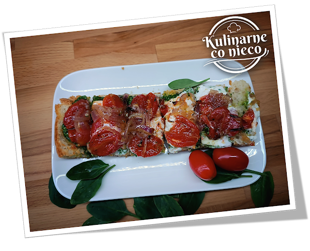 * UWAGA: Jeśli ktoś nie ma czasu lub ochoty piec Focaccii można ją zastąpić np.: bagietką paryską lub bułką typu Ciabatta.