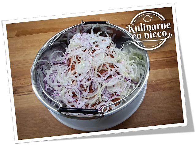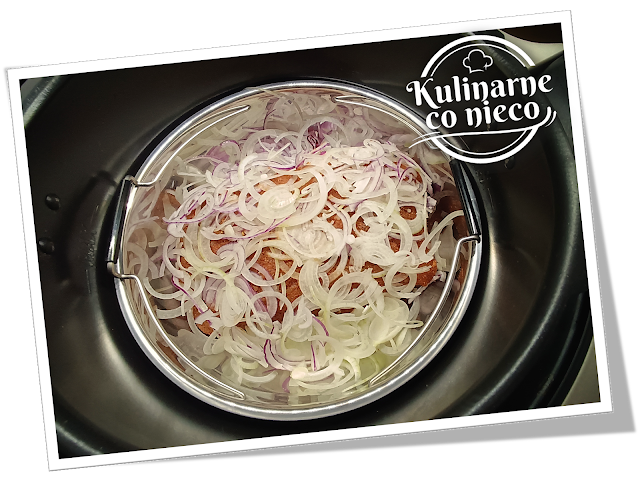 do gotowania na parze. Obłożyć mięso pokrojoną cebulą a następnie wstawić pojemnik