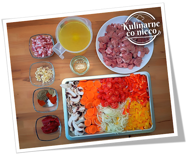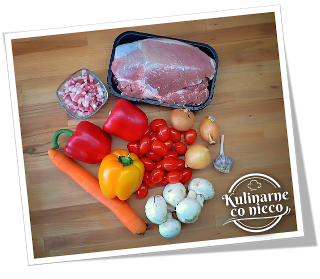 – ok 1½ kg mięsa wieprzowego (np.: karkówka, łopatka, polędwica, szynka lub schab)