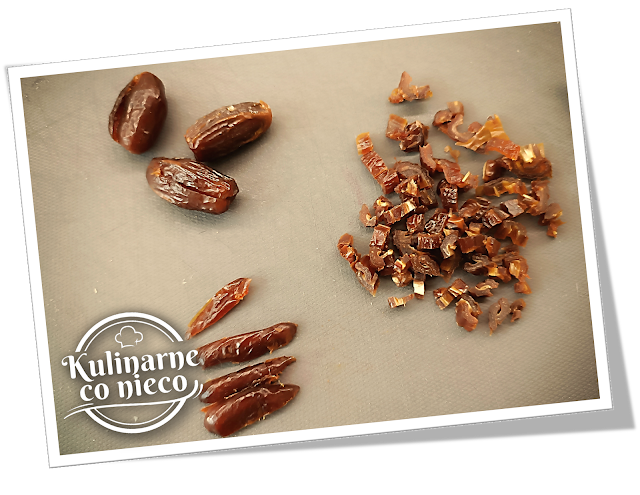 Daktyle pokroić na małe kawałki.