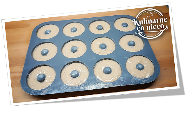 Donuty wyjąć z piekarnika i pozostawić do ostygnięcia na blasze przez 10 minut.