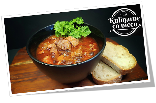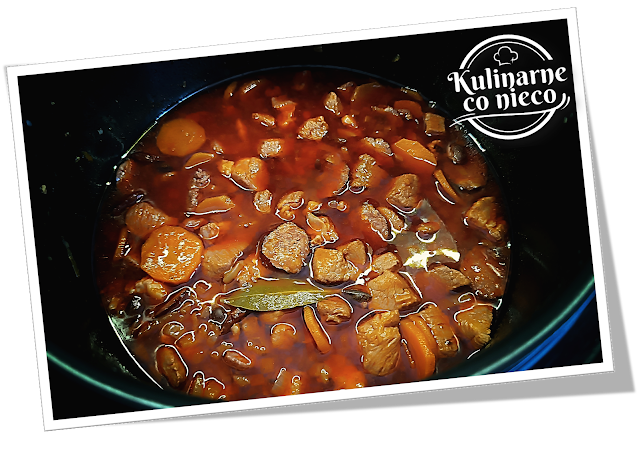 min. Na koniec dodać wcześniej podsmażone mięso, zalać całość bulionem, dodać