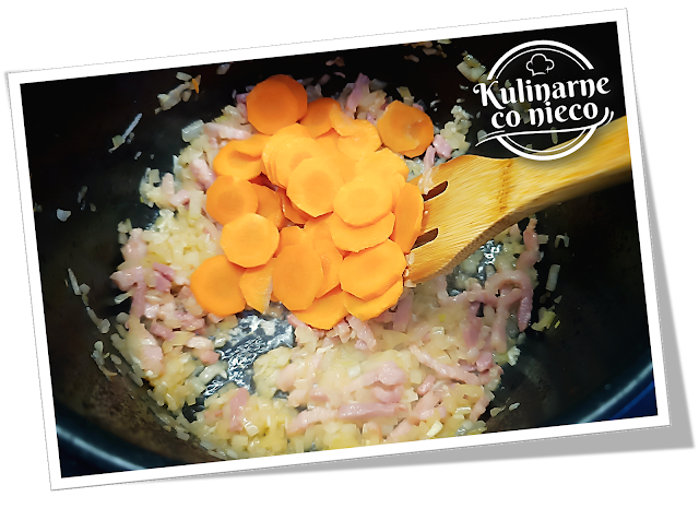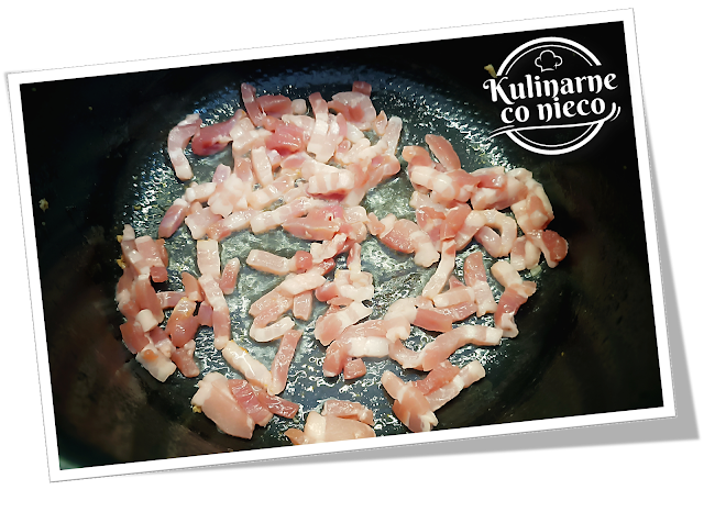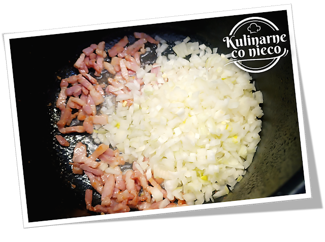 wytopić pokrojony w kostkę boczek. Gdy boczek nabierze już rumianego koloru