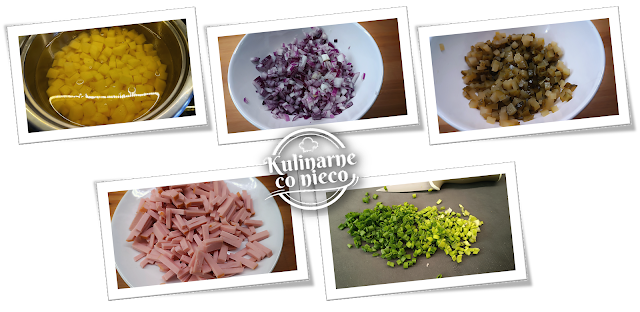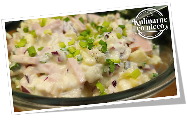 ogórki, mortadela i szczypiorek). Całość zalać sosem i delikatnie wymieszać aż wszystko