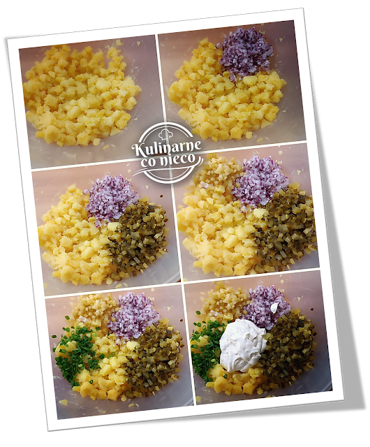 przygotowane składniki dodać do przestudzonych ziemniaków i delikatnie