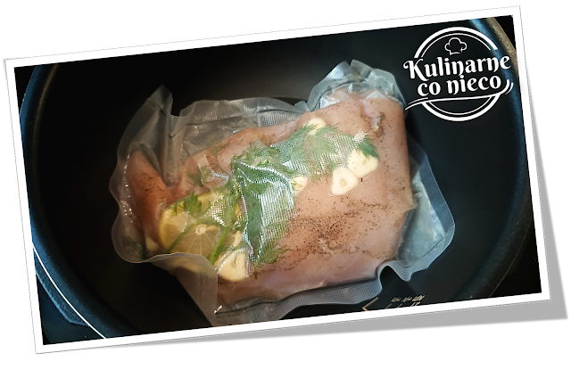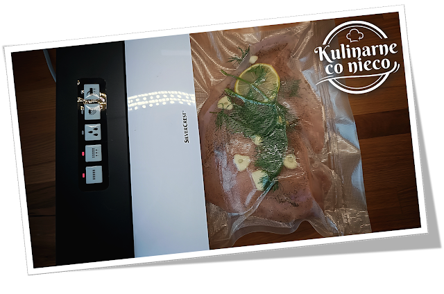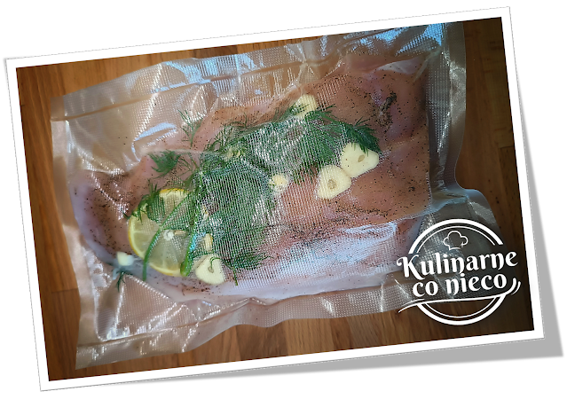 pierś umieścić w worku zgrzanym wcześniej z jednej strony. Na mięsie ułożyć gałązki