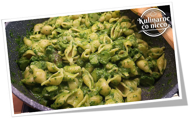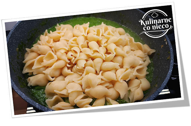 wszystko delikatnie wymieszać tak aby sos pokrył wszystkie muszelki.