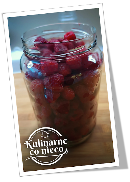 alkohol zlać do drugiego wcześniej umytego i wyparzonego wrzątkiem słoja. Maliny