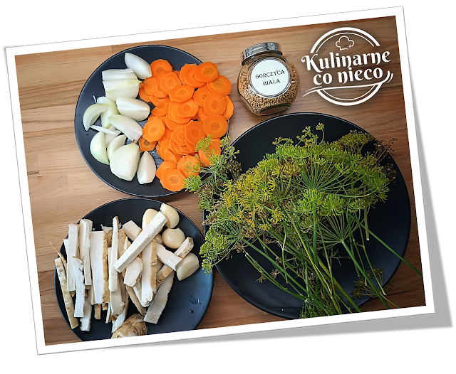 soli, cukru oraz przypraw takich jak czosnek, gorczyca, koper, ziele angielskie