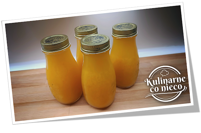* Natomiast z obranych pomarańczy proponuję wycisnąć sok np.: w wyciskarce wolnoobrotowej. Świeży tzw. surowy sok można przechowywać w lodówce przez min 2 dni, ale można także rozlać go do czystych, wcześniej wyparzonych wrzątkiem butelek i poddać krótkiej pasteryzacji. W ten sposób uzyskamy pyszny sok, bez konserwantów którym zaspokoimy pragnienie, kiedy tylko najdzie nas ochota na zdrowy napój. Proces pasteryzacji polega na umieszczeniu szczelnie zakręconych butelek w garnku wyłożonym czystą bawełniana ściereczką i zalaniem ich woda do ok ¾ ich wysokości. Następnie całość należy doprowadzić do wrzenia. Od momentu, gdy woda w garnku się zagotuje należy zmniejszyć moc palnika na średnią i gotować butelki z sokiem przez 20 min. Po tym czasie wyjąc butelki z garnka i odstawić do całkowitego ostygnięcia.