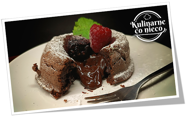się delikatnie pod naciskiem widelca, odkrywając płynne, czekoladowe wnętrze.