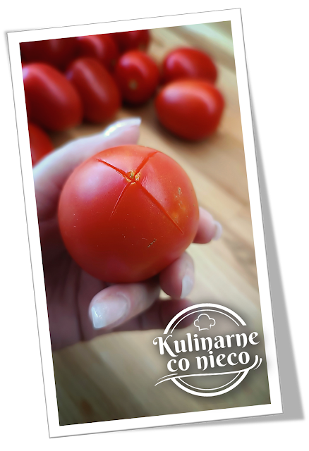 Zagotować wodę w dużym garnku. Pomidory zanurzyć we
