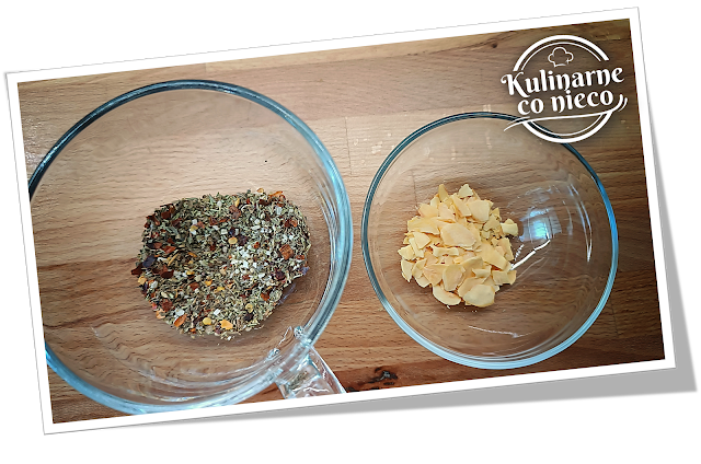 chili, suszoną bazylię, oregano, tymianek, rozmaryn i suszoną cebulę. Zioła nie