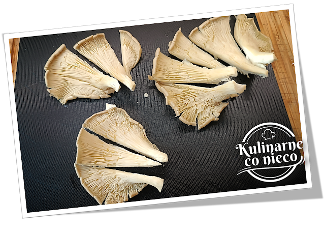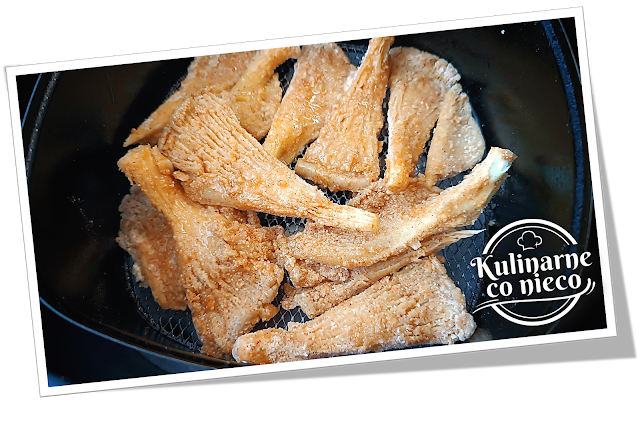 boczniaki, pieczone w urządzeniu AirFryer na złoty kolor, otulone aromatyczną